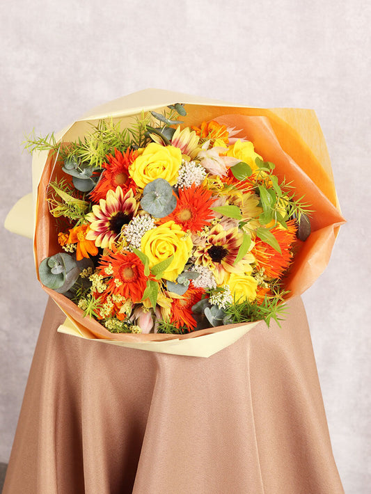 季節のおまかせ 暖かさを感じる暖色系ブーケ