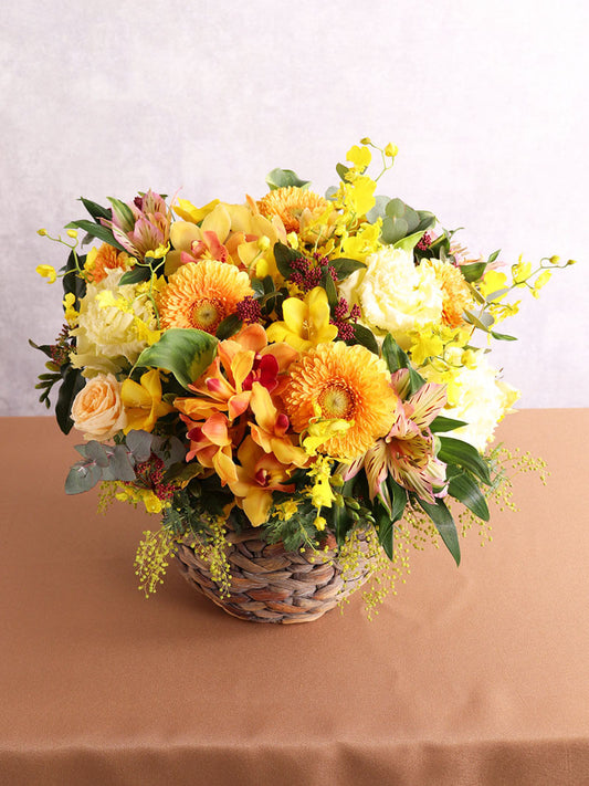 季節の花おまかせ黄色オレンジ系アレンジメント