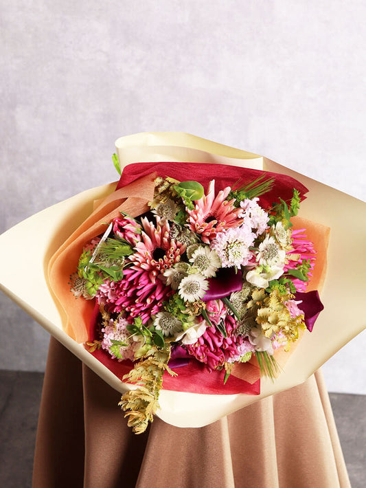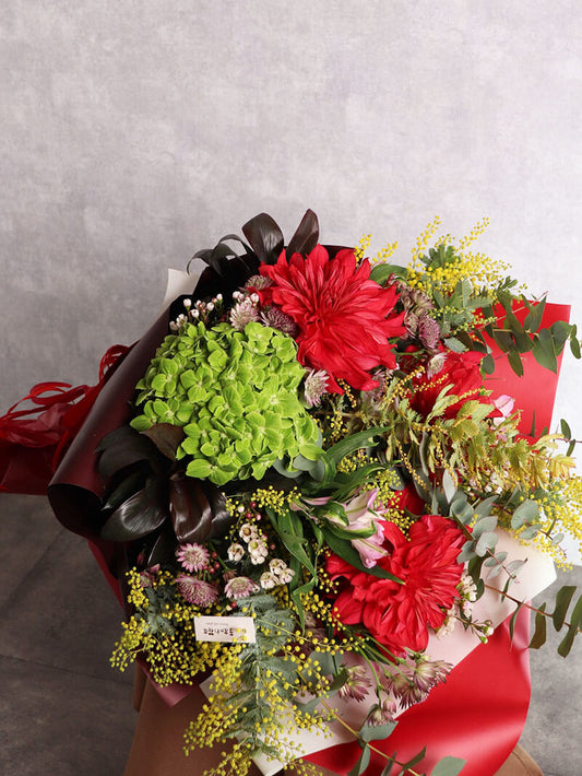 季節のおまかせ赤系の華やか花束