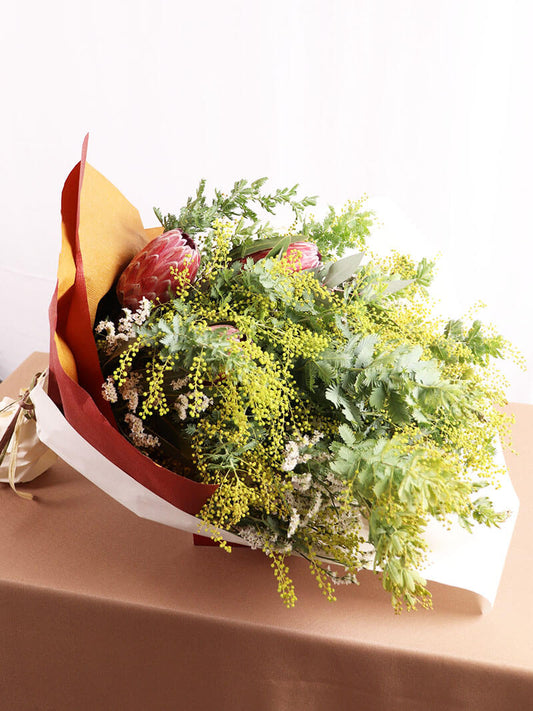 ミモザを入れたお任せ華やか花束