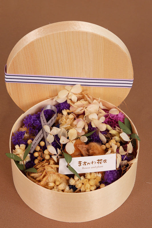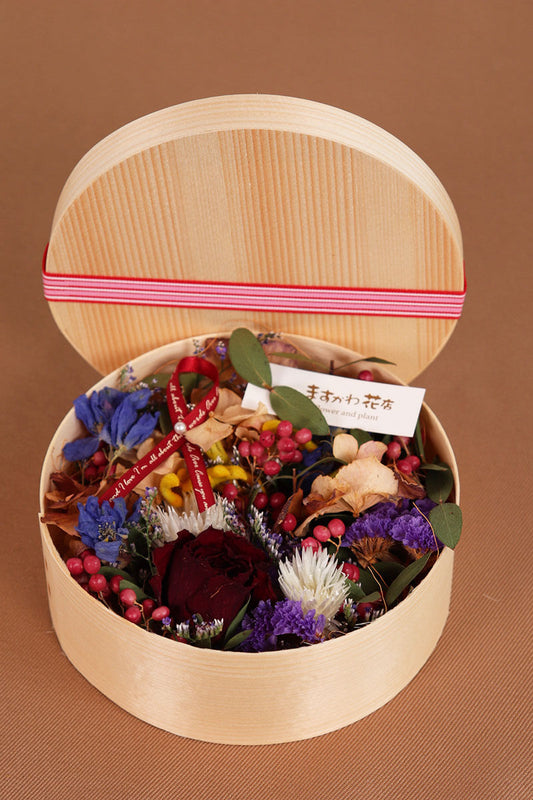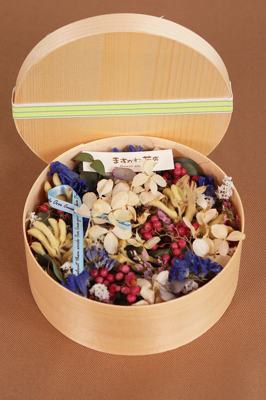 和のぬくもり漂う 輪っぱボックスのドライフラワーアレ...