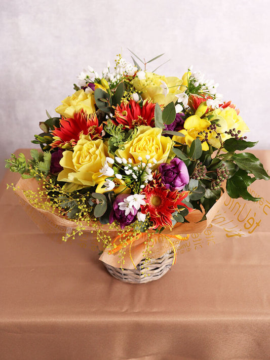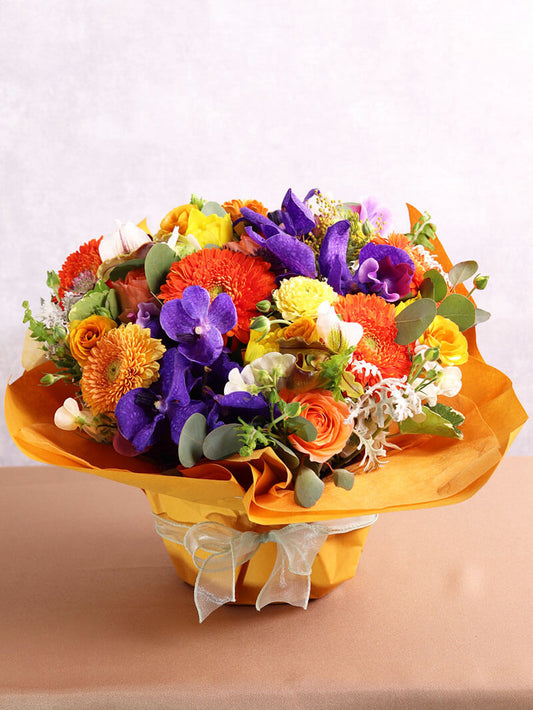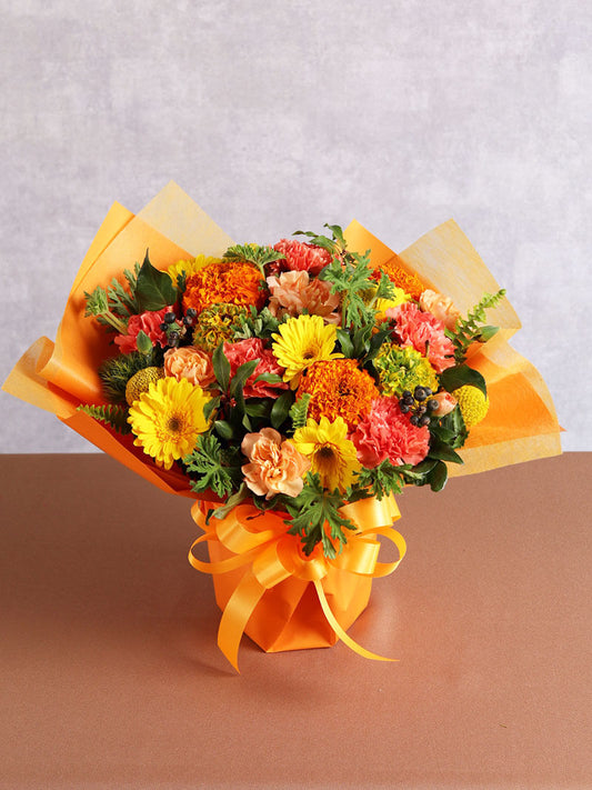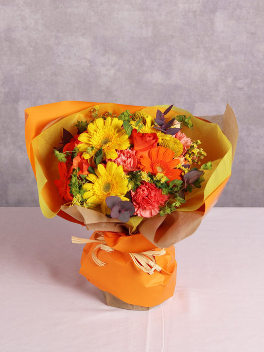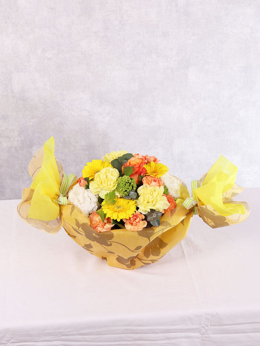 季節の花おまかせ黄色オレンジ系アレンジメント