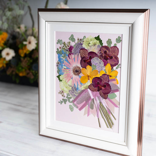 そんなお客様の声にお応えし、ますかわ花店では花束を押し花に保存加工するサービスを提供しています。(他店で購入された花束でもOK!)