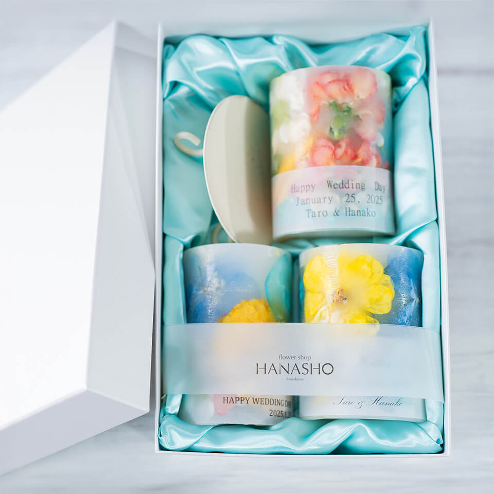 ・こちらの商品は、決済専用の商品です。 ・きれいに加工するために、なるべく早くお預かりさせてください(3日程度) ・お二人のお名前や、記念日などを入れることができます。 ・お客様から生花をお預かりした後に、キャンドル加工して納品させていただきます。 ・お客様が今お持ちのキャンドル加工したい花束を配送していただくか、店舗にご持参していただきます。 ・キャンドル加工をし、納品させていただきます。 ・写真はサンプルのため、同じものは一つとしてございません。 ・公式LINEを友達追加いただき、「お客様のお花」を花将に持参いただくか、ヤマト配送(当店が着払い負担)するかご連絡ください。(友達追加だけでは、当店からはお客様にメッセージをお送りすることができない仕様となっております) ・納品までに約4〜5ヶ月ほど掛かります。繁忙期(年末・母の日期間・お盆など)をはさむ場合、納品をお待ちいただく場合がございます。ご了承くださいませ。丁寧に心を込めてお作りいたします。