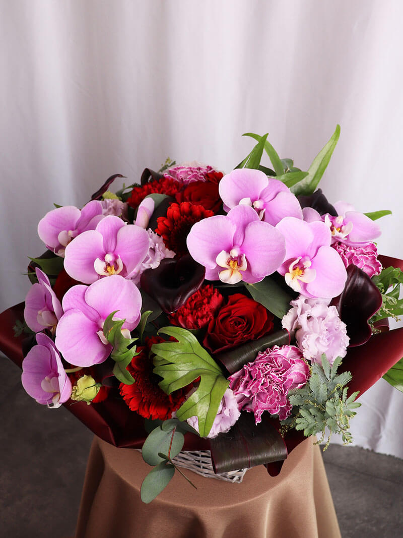 *お届け日はご希望としての承りとし、災害等の影響で遅延が生じる場合があることをご了承の上でご注文ください。 *一部地域への配送はご希望日時に添えない場合もあることをご了承ください。 *送料・決済方法・不在時対応等について、ご注文前にご利用案内をご一読・ご理解の上、ご注文ください。 *使用する花は、季節により発色や大きさが写真と異なる場合がございます。また、天候や仕入れの状況により変更する場合もありますが、ボリューム感や雰囲気は掲載写真にそうよう配慮いたします。花の仕入れは制作・発送の直前に決定するため、花の内容変更について事前にご連絡をすることが難しい場合があることを予めご了承ください。 *商品によっては、時期により仕入れ不可能な場合がございます。その際、速やかに弊社よりご連絡させていただきます。 *商品に納品書(商品の価格が記載されたもの)は一切同梱いたしません。 *領収書をご入用の際は、マイページの注文履歴より表示できます。 *1回のご注文でお届けできる住所は1箇所のみです。 *お届け先の住所が複数の場合は別々にご注文ください。