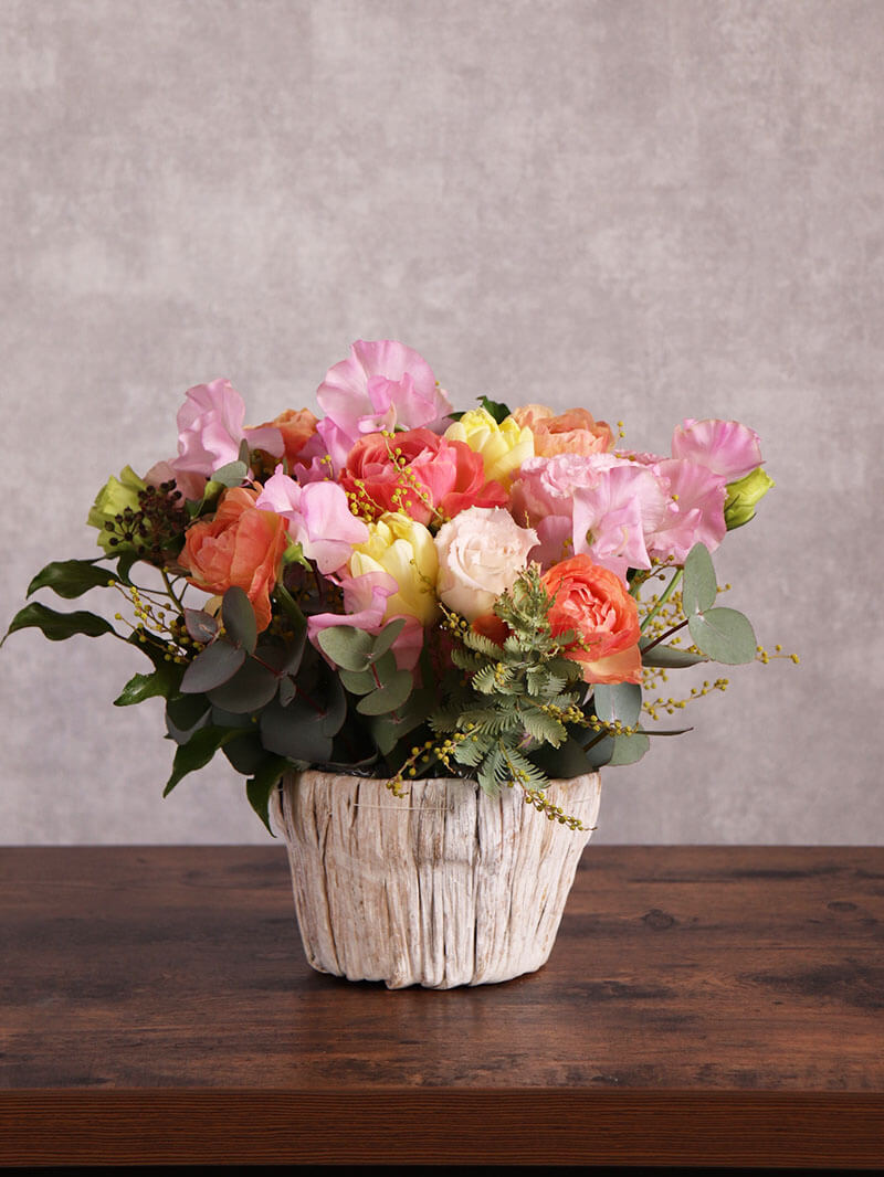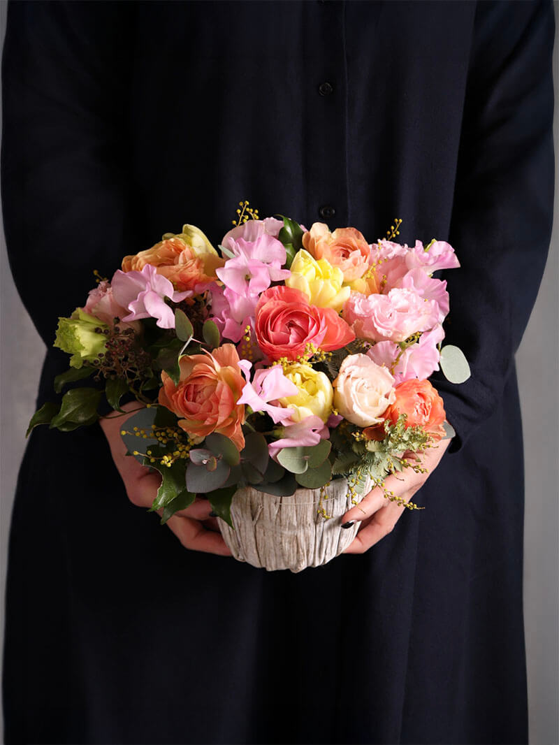 *お届け日はご希望としての承りとし、災害等の影響で遅延が生じる場合があることをご了承の上でご注文ください。 *一部地域への配送はご希望日時に添えない場合もあることをご了承ください。 *送料・決済方法・不在時対応等について、ご注文前にご利用案内をご一読・ご理解の上、ご注文ください。 *使用する花は、季節により発色や大きさが写真と異なる場合がございます。また、天候や仕入れの状況により変更する場合もありますが、ボリューム感や雰囲気は掲載写真にそうよう配慮いたします。花の仕入れは制作・発送の直前に決定するため、花の内容変更について事前にご連絡をすることが難しい場合があることを予めご了承ください。 *商品によっては、時期により仕入れ不可能な場合がございます。その際、速やかに弊社よりご連絡させていただきます。 *商品に納品書(商品の価格が記載されたもの)は一切同梱いたしません。 *領収書をご入用の際は、マイページの注文履歴より表示できます。 *1回のご注文でお届けできる住所は1箇所のみです。 *お届け先の住所が複数の場合は別々にご注文ください。