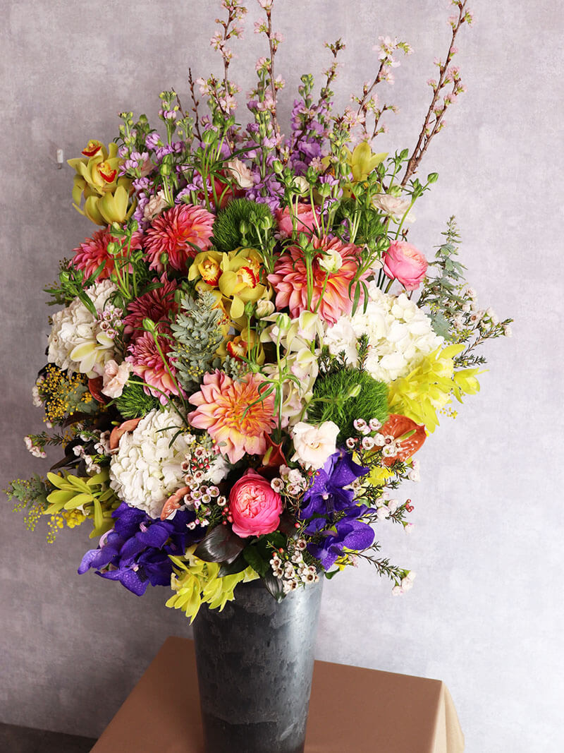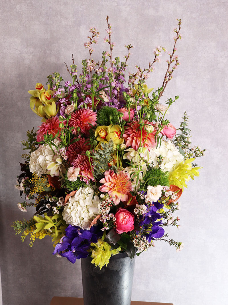 *お届け日はご希望としての承りとし、災害等の影響で遅延が生じる場合があることをご了承の上でご注文ください。 *一部地域への配送はご希望日時に添えない場合もあることをご了承ください。 *送料・決済方法・不在時対応等について、ご注文前にご利用案内をご一読・ご理解の上、ご注文ください。 *使用する花は、季節により発色や大きさが写真と異なる場合がございます。また、天候や仕入れの状況により変更する場合もありますが、ボリューム感や雰囲気は掲載写真にそうよう配慮いたします。花の仕入れは制作・発送の直前に決定するため、花の内容変更について事前にご連絡をすることが難しい場合があることを予めご了承ください。 *商品によっては、時期により仕入れ不可能な場合がございます。その際、速やかに弊社よりご連絡させていただきます。 *商品に納品書(商品の価格が記載されたもの)は一切同梱いたしません。 *領収書をご入用の際は、マイページの注文履歴より表示できます。 *1回のご注文でお届けできる住所は1箇所のみです。 *お届け先の住所が複数の場合は別々にご注文ください。