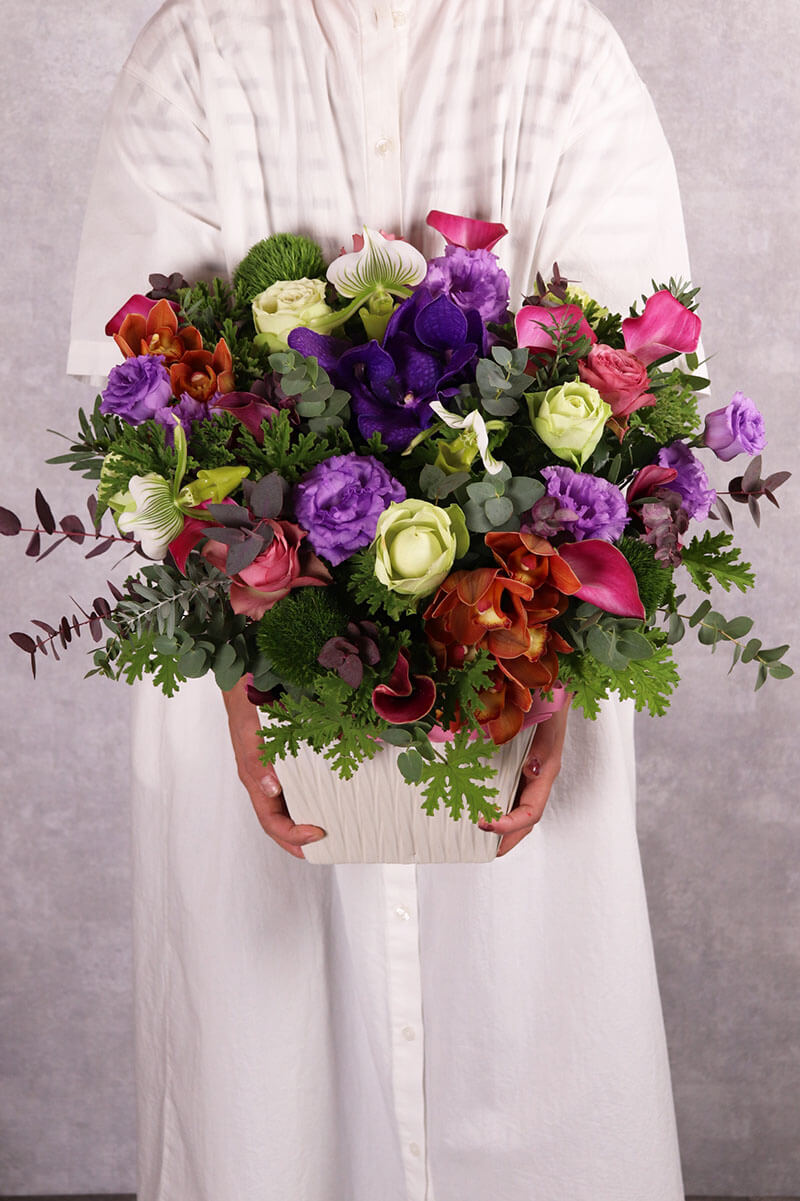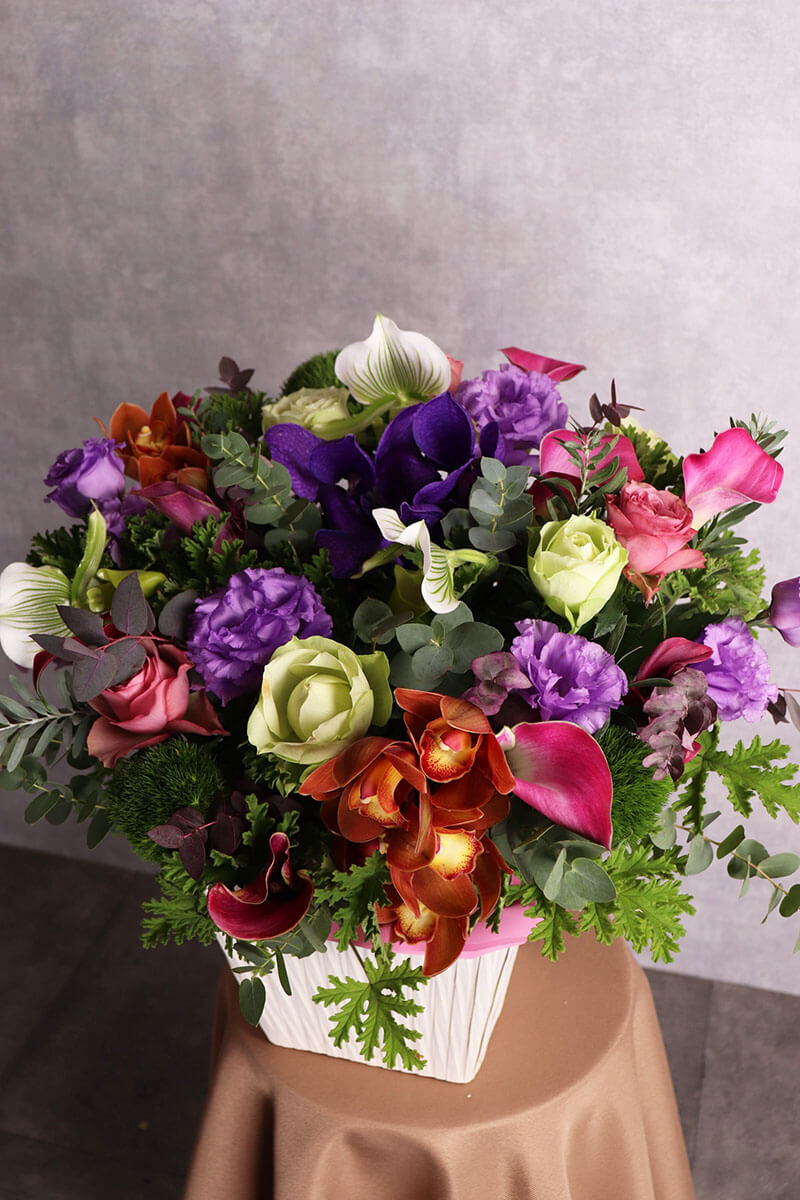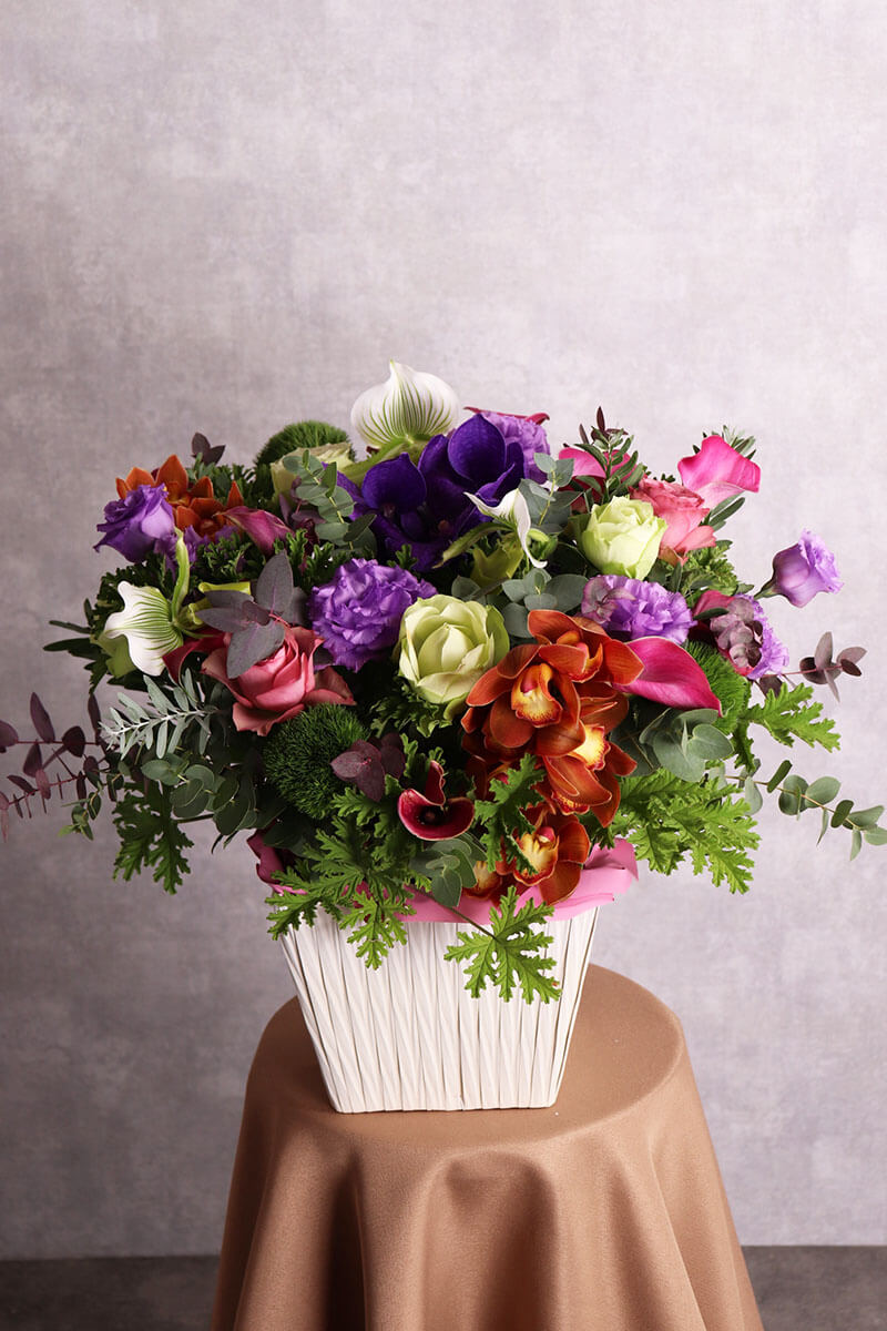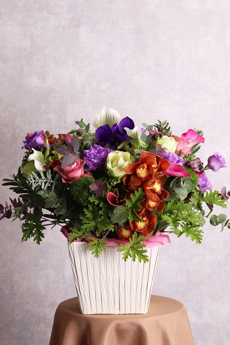ミックス系 蘭を入れた季節のおまかせアレンジメント