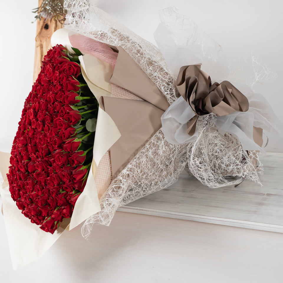 一年分の想いを込めた、圧倒的な存在感を放つ特別な花束です。深みのある赤が一面に広がり、記念日やプロポーズ、人生の節目を華やかに演出します。写真映えする豪華なボリュームで、忘れられない感動をお届け。東広島市の花屋「ますかわ花店」が心を込めて丁寧に仕上げ、特別な日のサプライズを全力でサポートします。大切な方へ、想いを形にした最高級のギフトをどうぞ。