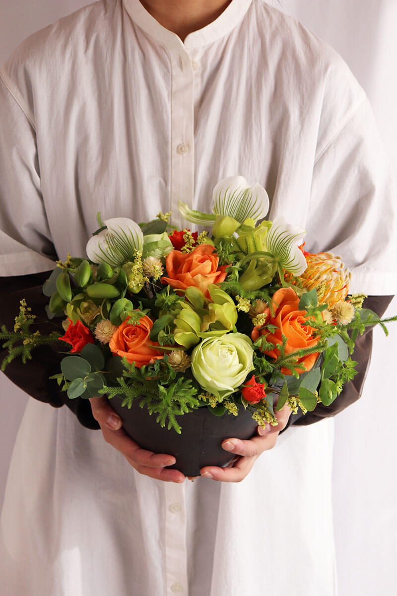 彩りそえる、オレンジ×グリーンの癒しアレンジ