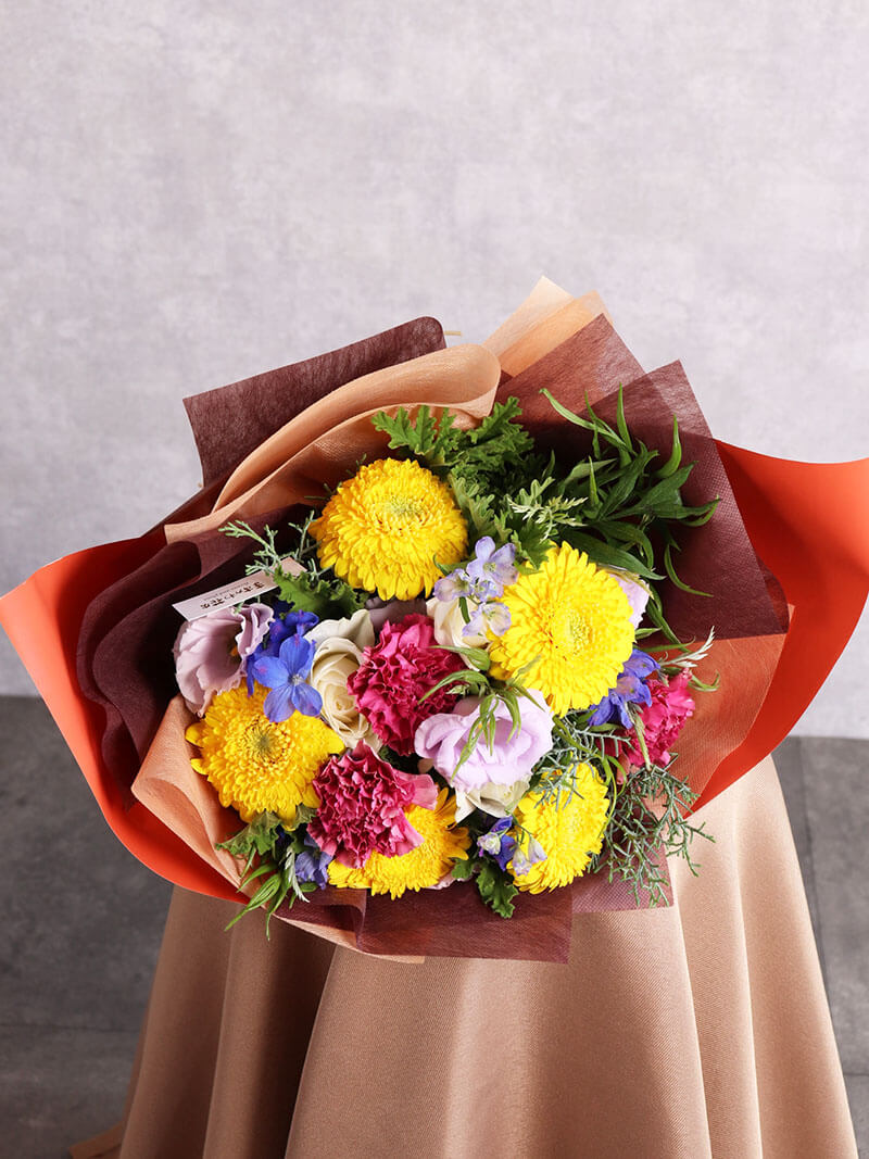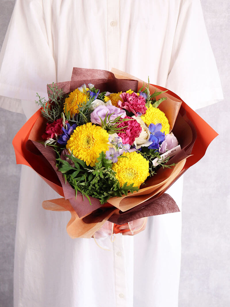 *お届け日はご希望としての承りとし、災害等の影響で遅延が生じる場合があることをご了承の上でご注文ください。 *一部地域への配送はご希望日時に添えない場合もあることをご了承ください。 *送料・決済方法・不在時対応等について、ご注文前にご利用案内をご一読・ご理解の上、ご注文ください。 *使用する花は、季節により発色や大きさが写真と異なる場合がございます。また、天候や仕入れの状況により変更する場合もありますが、ボリューム感や雰囲気は掲載写真にそうよう配慮いたします。花の仕入れは制作・発送の直前に決定するため、花の内容変更について事前にご連絡をすることが難しい場合があることを予めご了承ください。 *商品によっては、時期により仕入れ不可能な場合がございます。その際、速やかに弊社よりご連絡させていただきます。 *商品に納品書(商品の価格が記載されたもの)は一切同梱いたしません。 *領収書をご入用の際は、マイページの注文履歴より表示できます。 *1回のご注文でお届けできる住所は1箇所のみです。 *お届け先の住所が複数の場合は別々にご注文ください。