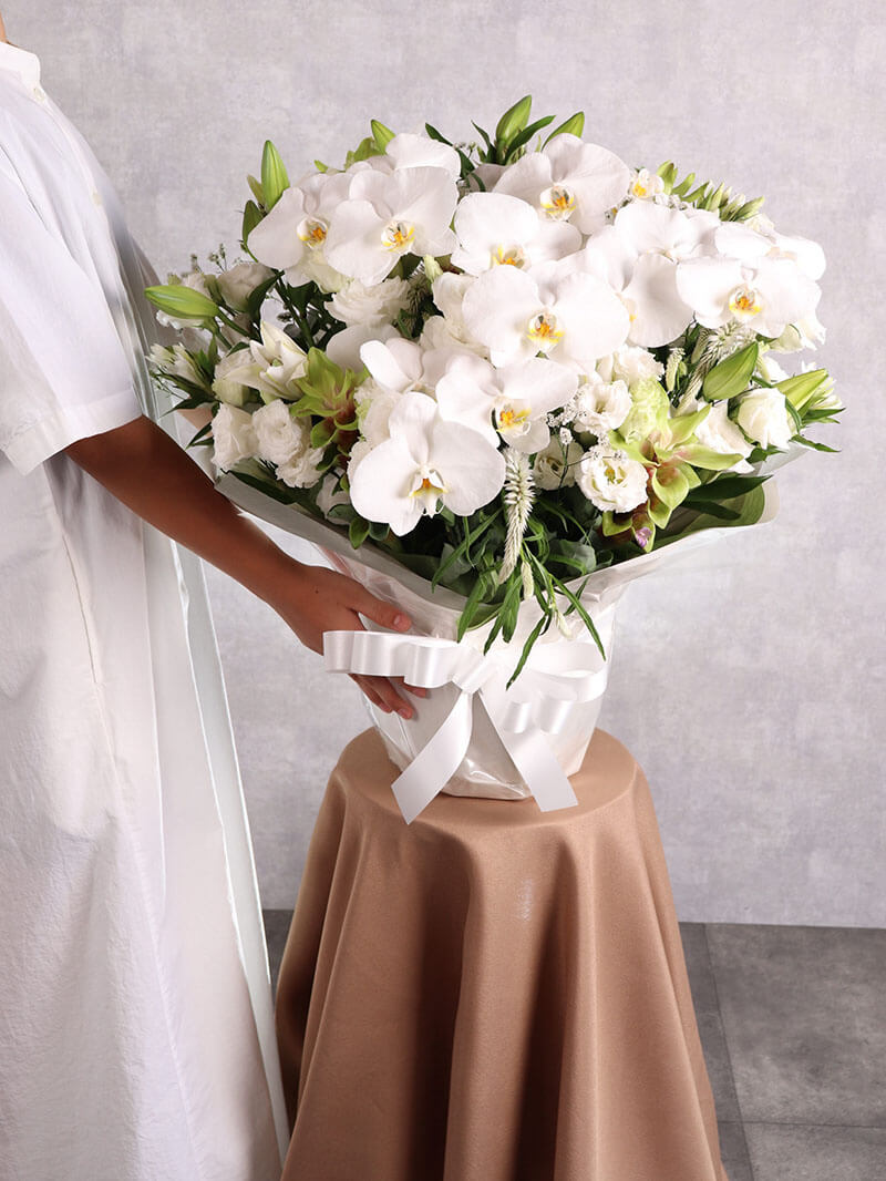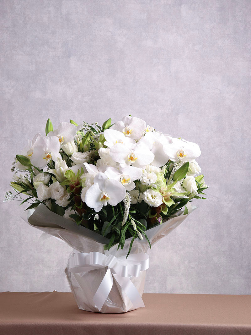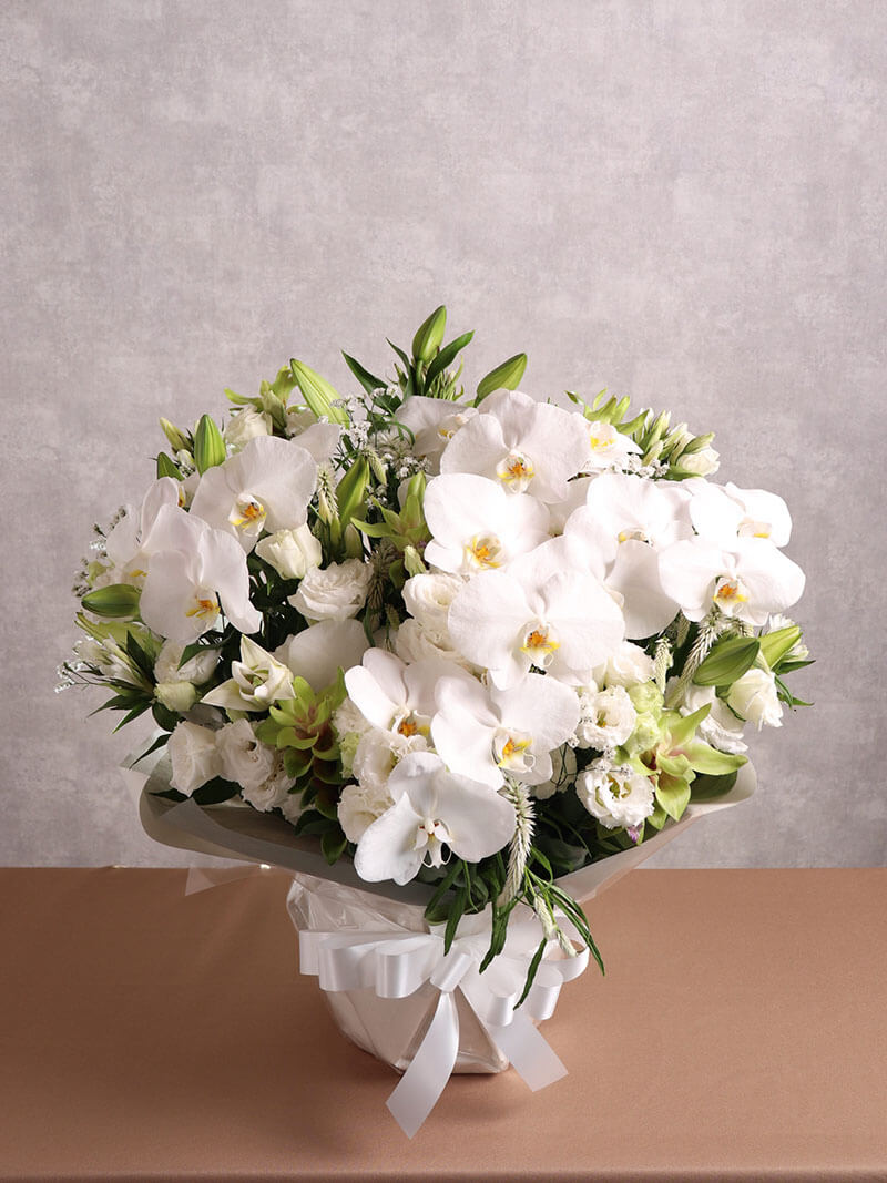 白基調 胡蝶蘭を入れた お供えアレンジメント